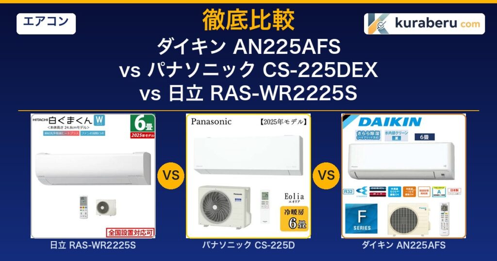 ダイキン AN225AFS・パナソニック CS-225DEX・日立 RAS-WR2225Sを徹底比較。さらら除湿・ナノイーX・凍結洗浄の違い、スペック・価格・口コミを比較して最適な1台を見つけましょう。 -