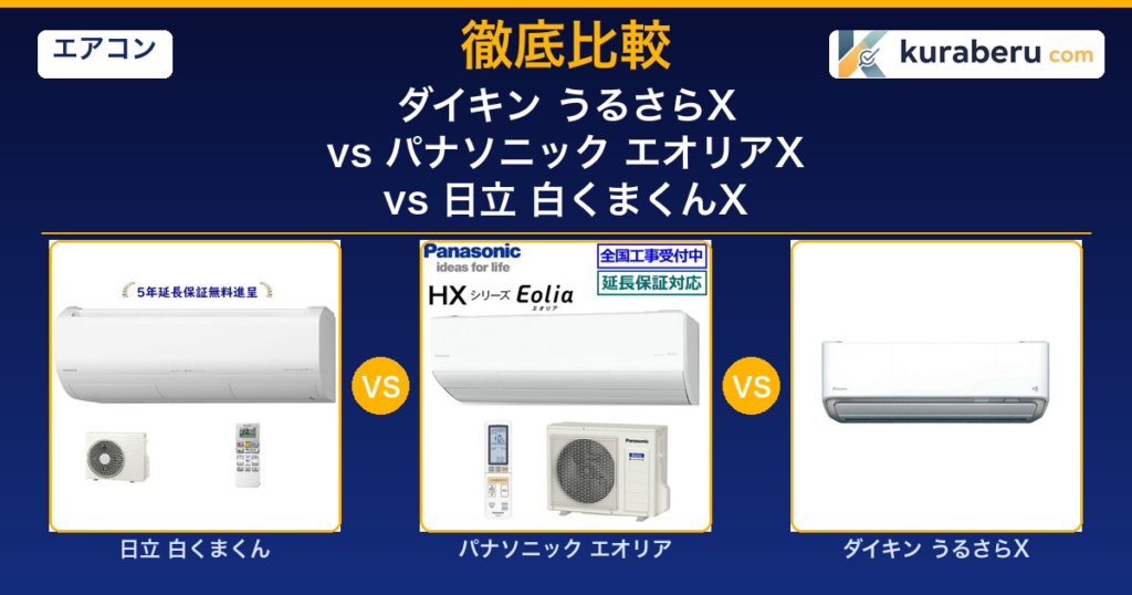 【2026最新】ダイキン うるさらX vs パナソニック エオリアX vs 日立 白くまくんX 徹底比較|最上位エアコン3社の選び方