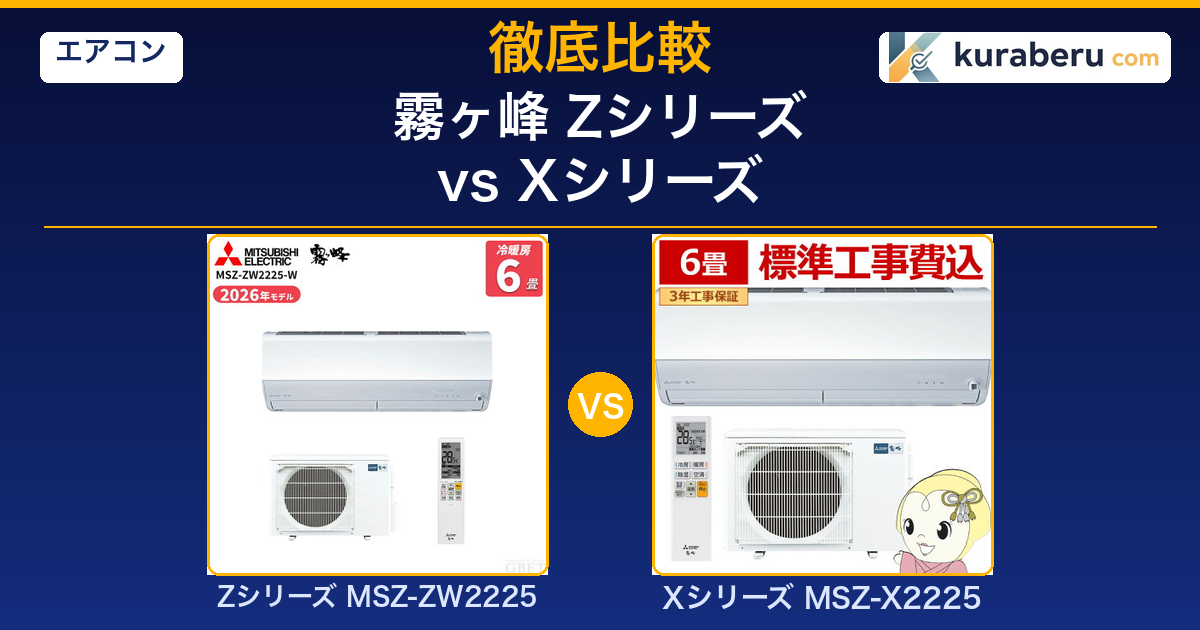 「霧ヶ峰のZシリーズとXシリーズ、何が違うの?」「上位モデルのZの方が安いって本当?」——三菱電機のエアコン選びで、この疑問にぶつかる方は少なくありません。
