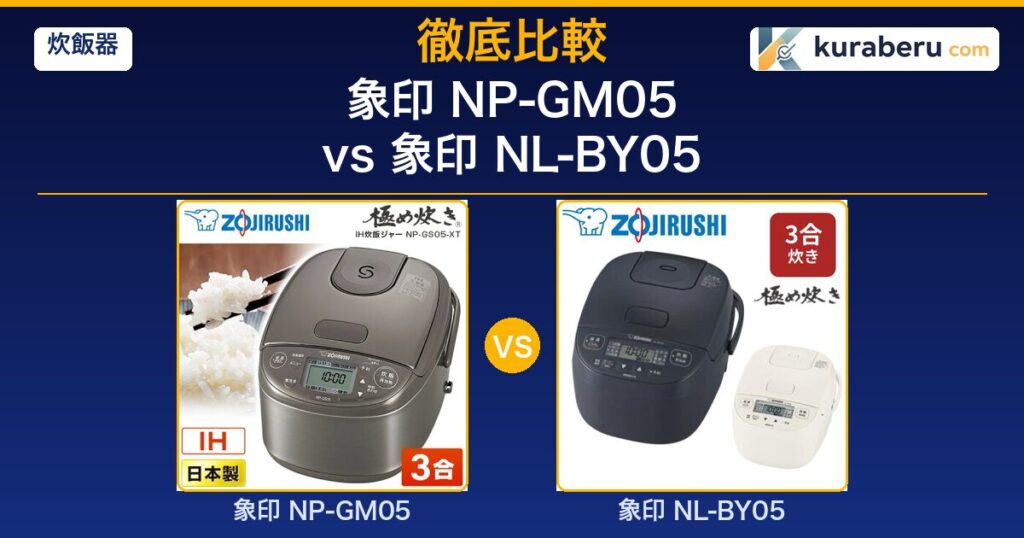 【2026最新】象印NP-GM05 vs NL-BY05 徹底比較|IHとマイコン3合炊き、5千円の差で何が変わる?