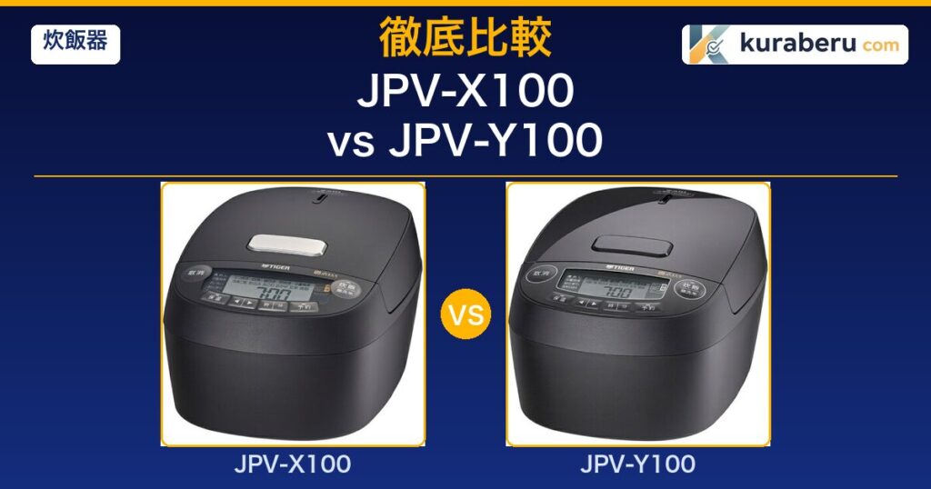 タイガー圧力IH炊飯器JPV-X100とJPV-Y100の違いを徹底比較。遠赤5層vs3層の内釜で味はどう変わる?大型液晶・すしカレーモード・カラー展開の差を、実際の購入者口コミとメーカー公式スペックで検証。約5,000円の差額は価値があるのか、状況別のおすすめまで解説します。 -