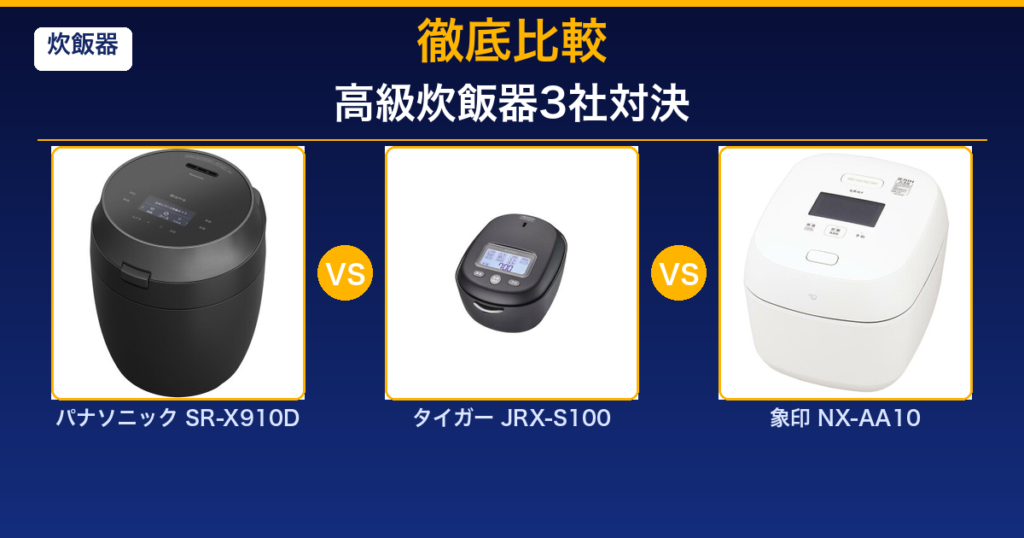 【2026年最新】象印 NX-AA10 vs パナソニック SR-X910D vs タイガー JRX-S100|高級炊飯器3社フラッグシップ徹底比較