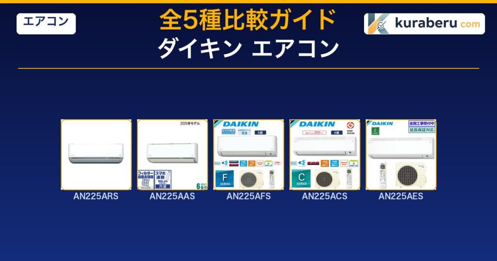 ダイキンエアコン量販店モデル(うるさらX/A/F/C/Eシリーズ)全5機種を予算帯別に比較。7万円台のEシリーズから28万円のうるさらXまで、あなたに最適な1台が見つかります。