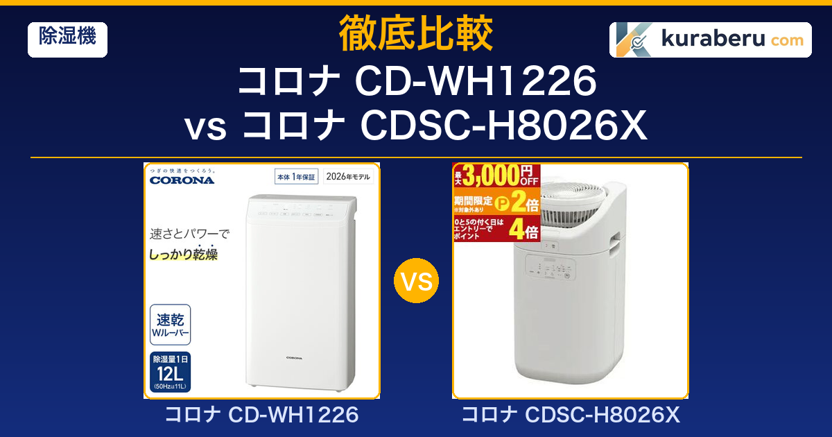 【2026最新】コロナ CD-WH1226 vs CDSC-H8026X 徹底比較|ヒーター速乾 vs サーキュレーター分離