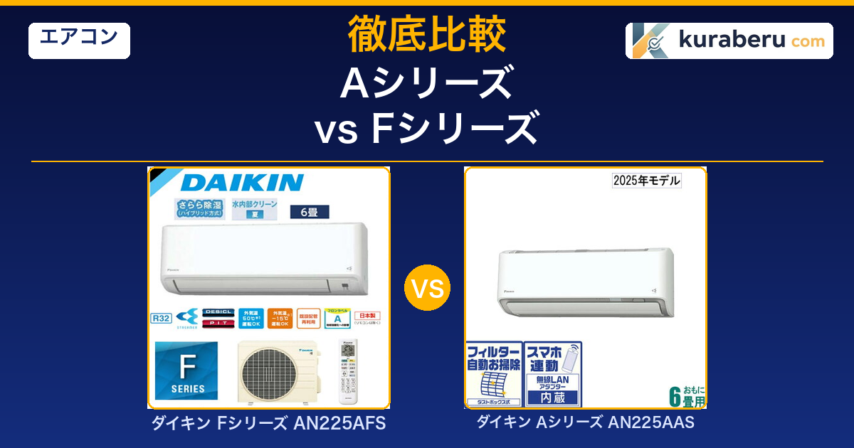 ダイキンのAシリーズとFシリーズ、約8万円の価格差(本体のみ同士の比較)のポイントをまとめます。