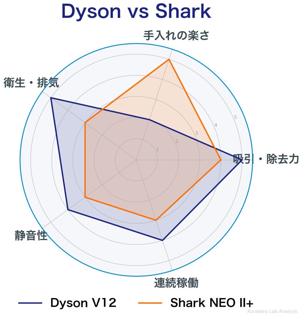 今回の「Dyson vs Shark」頂上決戦、それぞれの強みがはっきりと分かれました。