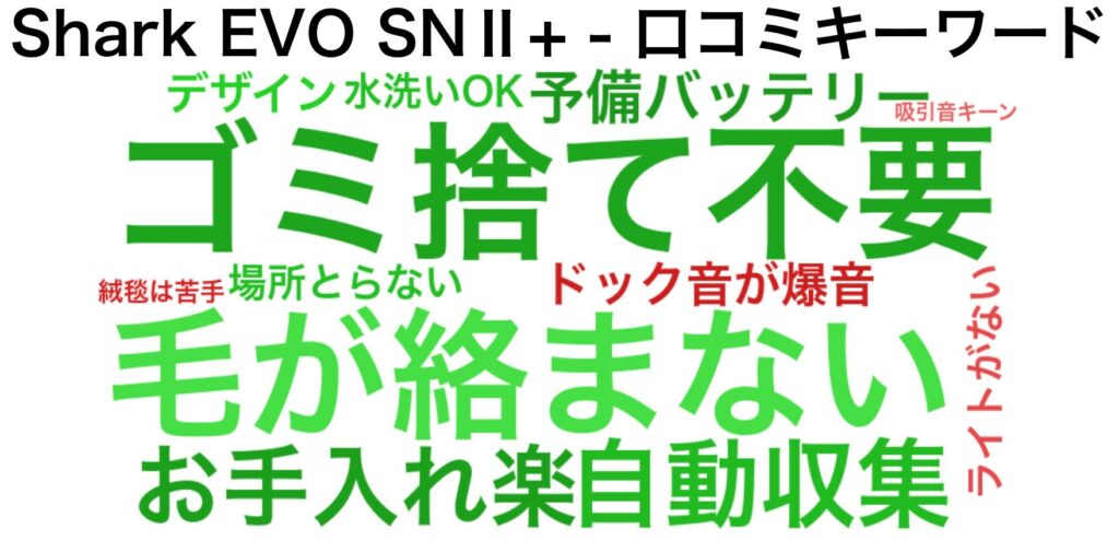 「可視化」「静音性」が高く評価されている一方、「価格」や「ゴミ捨て」に関する意見も見られます。