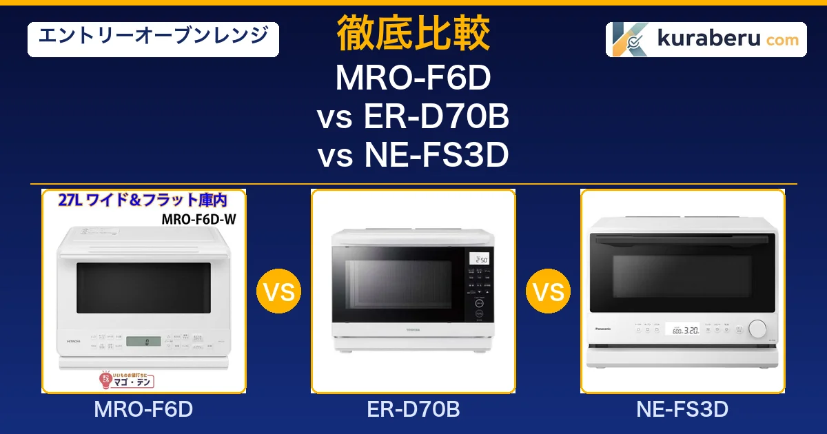 【2026最新】MRO-F6D vs ER-D70B vs NE-FS3D 徹底比較|3万円エントリーオーブンレンジ日立・東芝・パナソニック