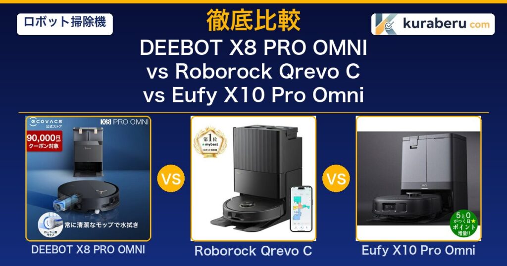 【2026最新】DEEBOT X8 PRO OMNI vs Roborock Qrevo C vs Eufy X10 Pro Omni 徹底比較 | 高性能ロボット掃除機