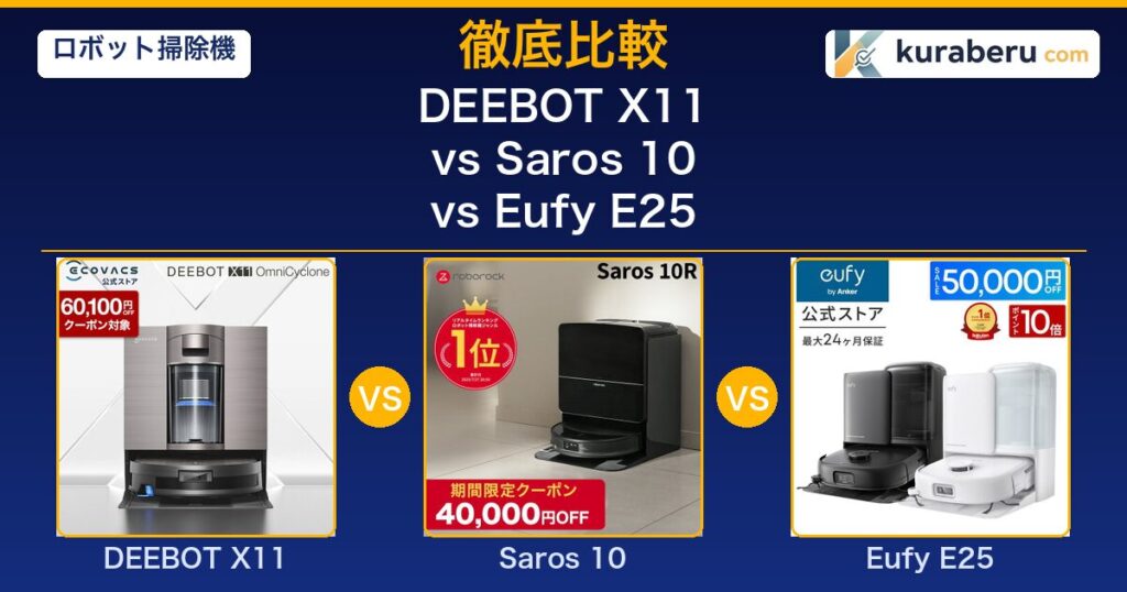【2026年最新】DEEBOT X11・Saros 10・Eufy E25 プレミアムロボット掃除機3機種を徹底比較