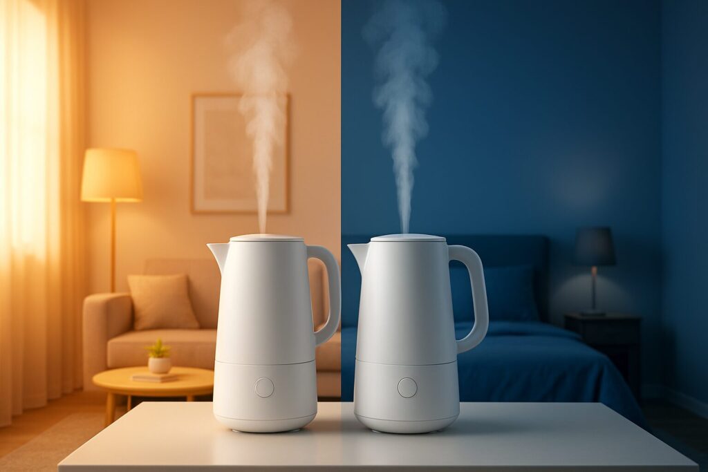 2025年最新の象印スチーム式加湿器EE-TB60とEE-DF50の違いを徹底比較。「手入れが楽」と評判のフィルターレスモデルですが、電気代や音、連続運転時間は?リビング用・寝室用にどっちがおすすめか、実際の口コミやスペック差からプロが解説。在庫がなくなる前にチェック!