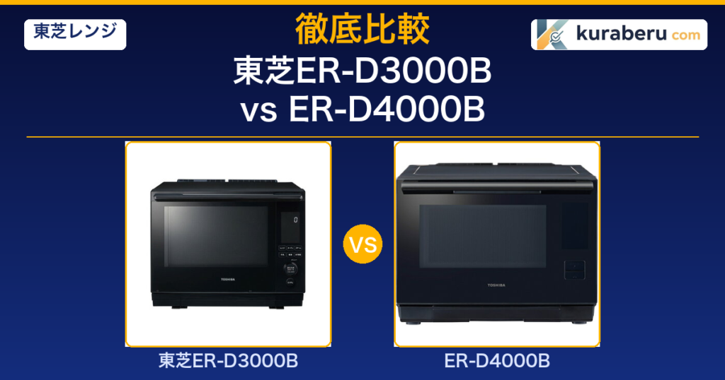 東芝石窯ドームER-D3000BとER-D4000Bを徹底比較。30L大容量のスタンダード vs 26Lコンパクトプレミアム。スペック・口コミ・価格差1.5万円の内訳を解説し、あなたに合う1台がわかります。