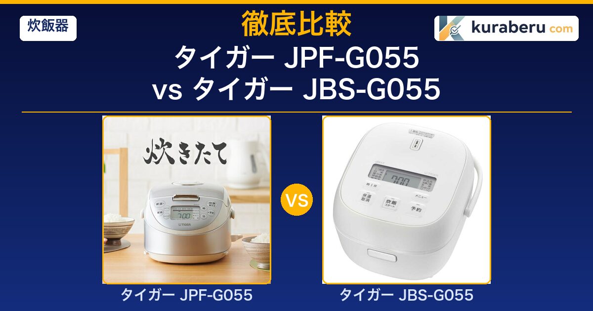※スペックはタイガー公式 JPF-G055・タイガー公式 JBS-G055を参照。口コミはAmazon.co.jp・価格.comのレビューを分析。価格は2026年4月時点の楽天市場最安値。