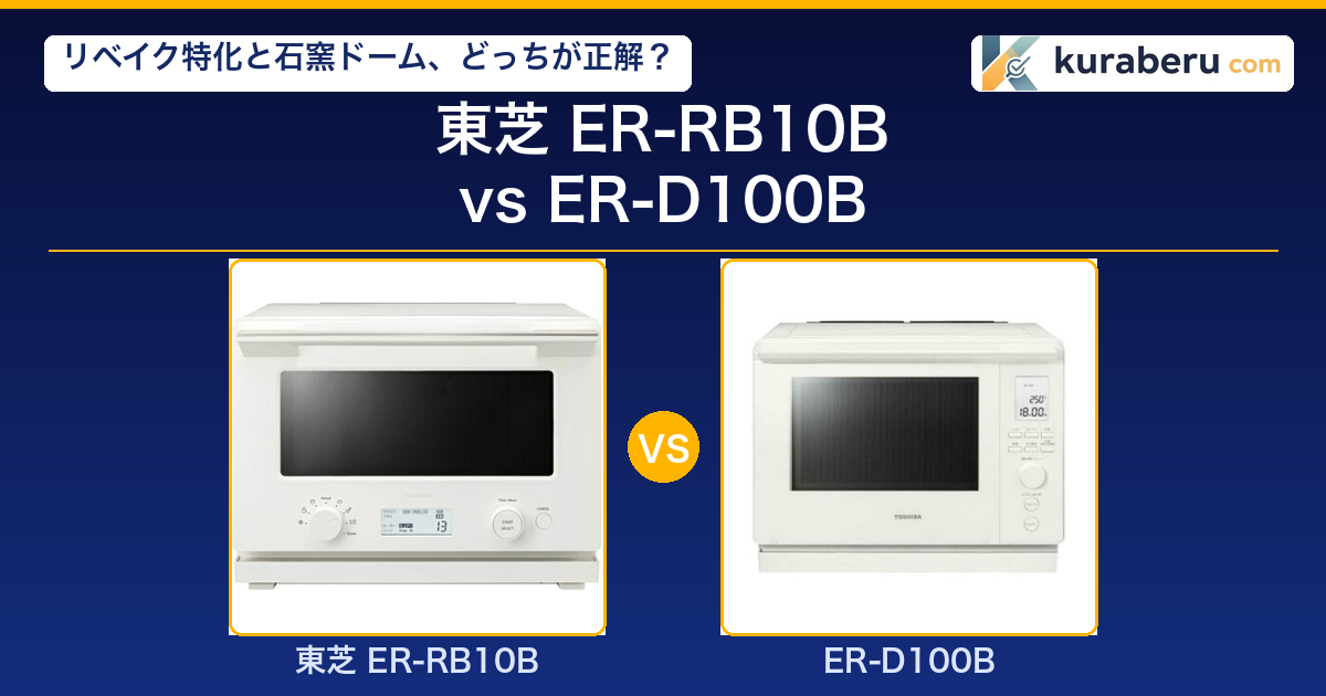 「スーパーの揚げ物をカラッと温めたい」「石窯ドームのスタンダードモデルが気になる」——東芝のオーブンレンジを検討している方なら、一度はER-RB10BとER-D100Bの2機種で迷ったことがあるのではないでしょうか。